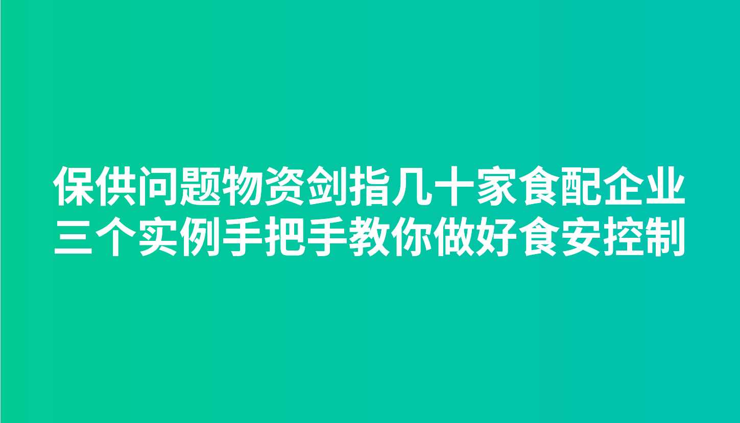 干货 | 保供问题物资剑指几十家食配企业 三个实例手把手教你做好食安控制