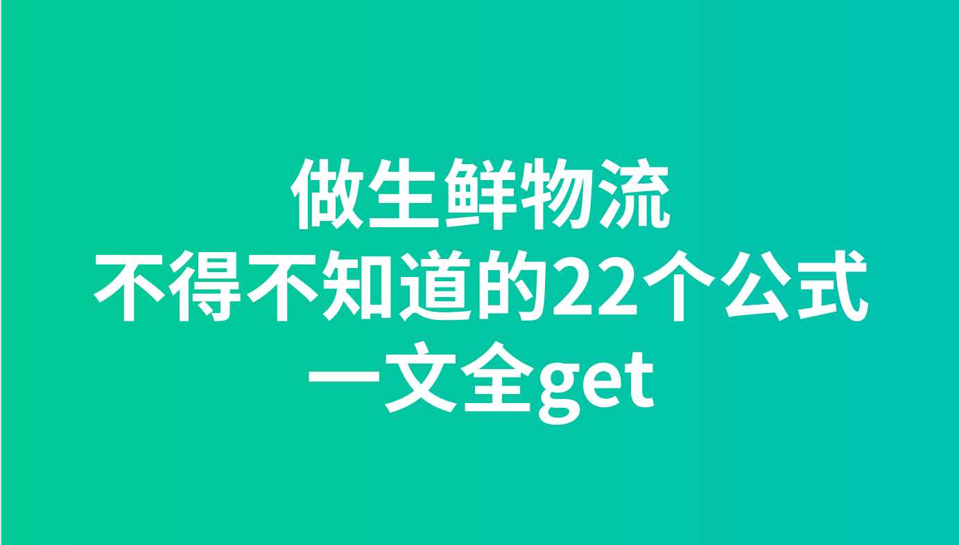 干货 | 生鲜物流成本核算不得不知道的22个公式,一文全get!
